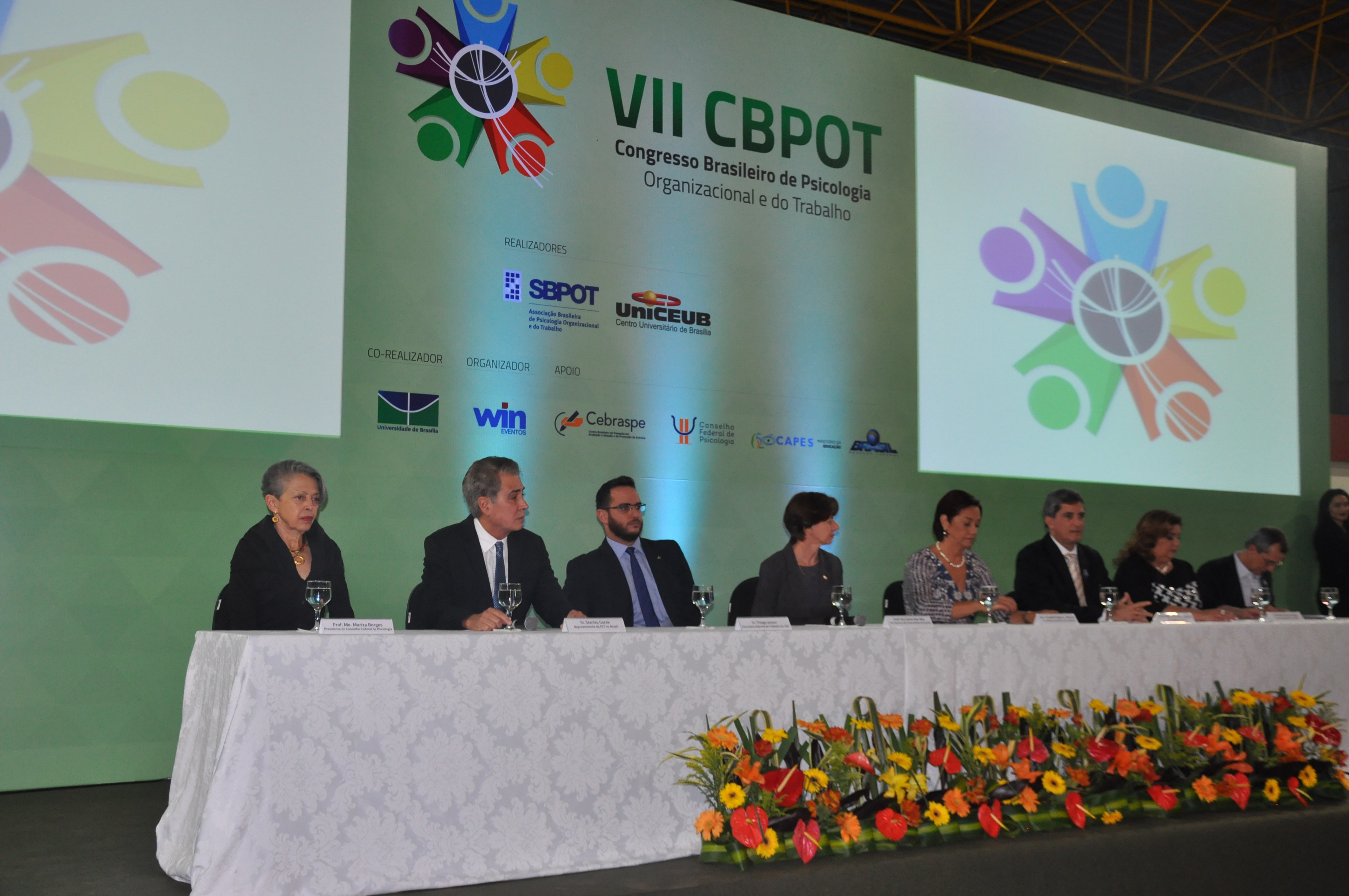A abertura oficial do evento contou com as presenças de representantes do Conselho Federal de Psicologia (CFP), da Universidade de Brasília (UnB), do Centro Universitário de Brasília (UniCEUB), do Governo do Distrito Federal (GDF) e da própria Associação Brasileira de Psicologia Organizacional e do Trabalho (SBPOT). Além das falas inaugurais, foi realizada uma conferência sobre “Doutrina do Trabalho Decente e as Áreas Temáticas do VII CBPOT” com Stanley Gacek, Diretor Adjunto do Escritório da Organização Internacional do Trabalho (OIT) no Brasil.