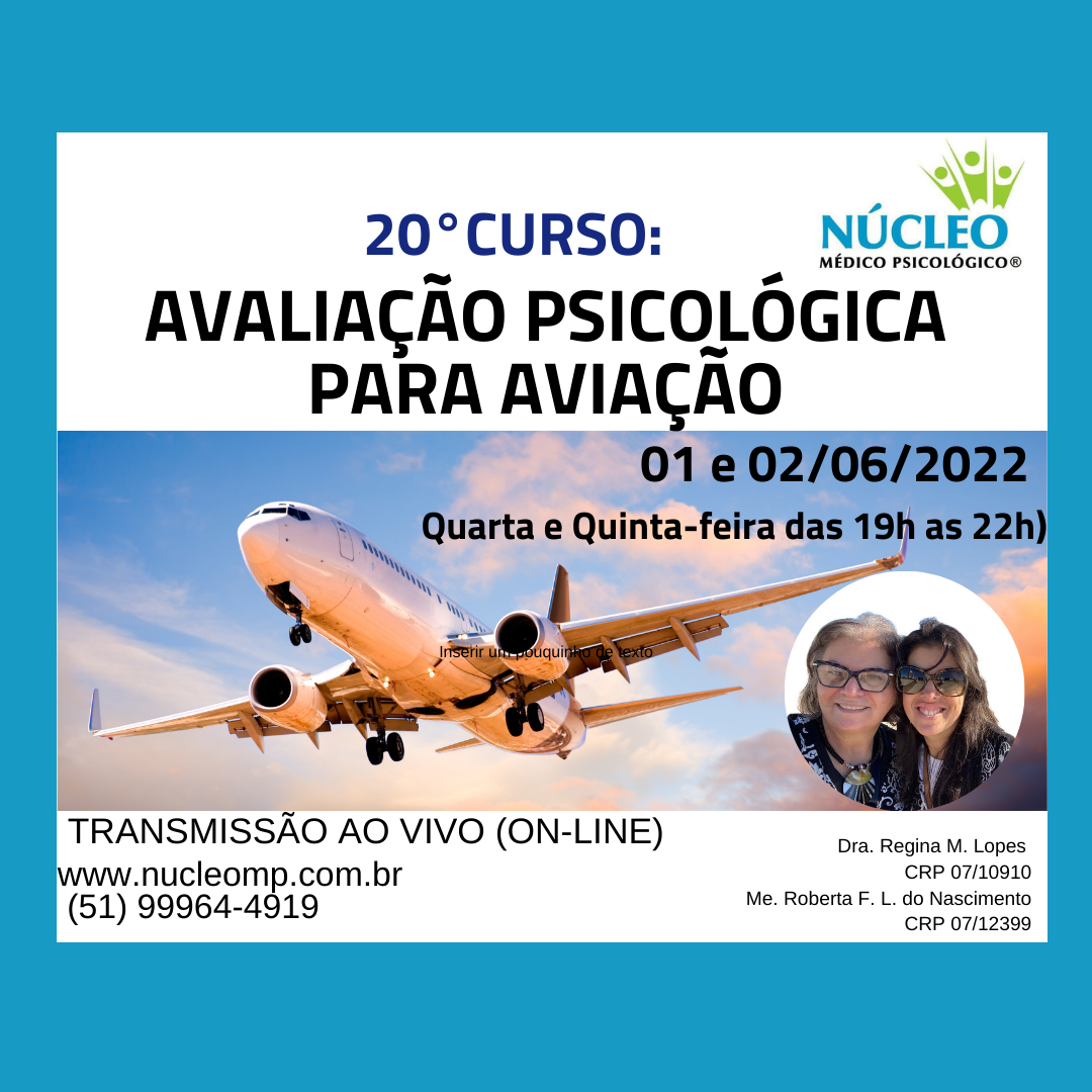 Objetivo: Capacitar profissionais e estudantes da psicologia para trabalhar com Avaliação Psicológica para Pilotos e Comissários de bordo Instrumentalizar os participantes à compreensão, utilizaçãode instrumentos psicológicos e elaboração de Laudos Psicológicos dentro dos princípios técnicos e éticos.