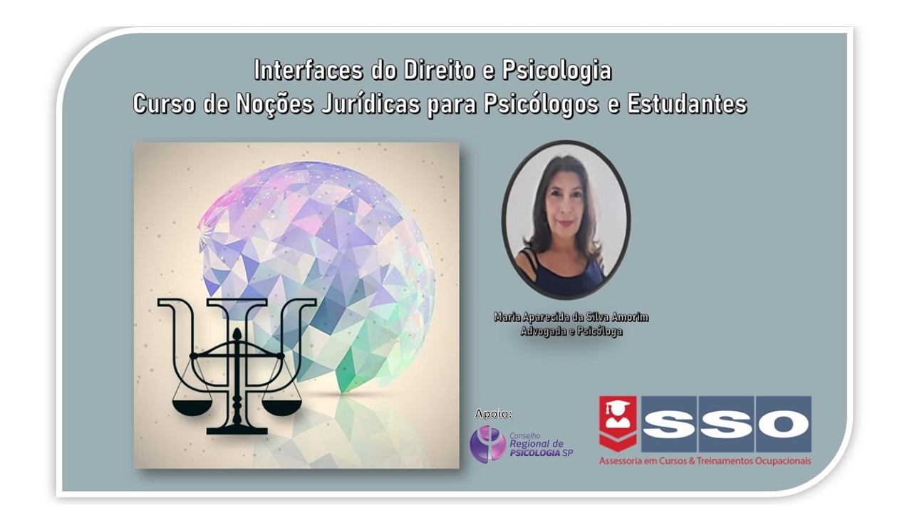 On Line (ao vivo) Interfaces do Direito e Psicologia – Curso de Noções Jurídicas para Psicólogos e Estudantes