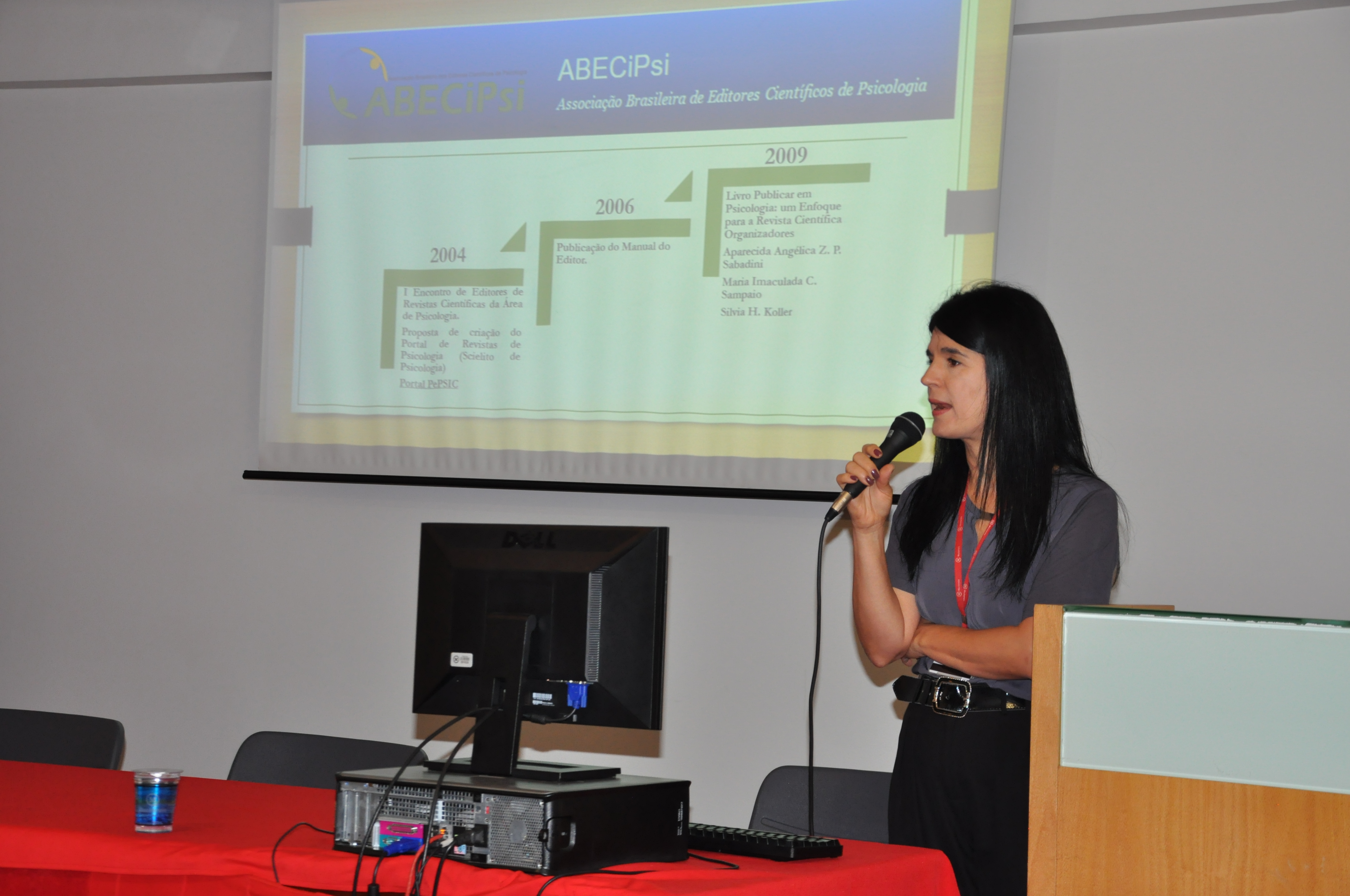 A presidente da ABECiPsi,a Professora Maria Cristina Triguero, abriu o simpósio destacando a trajetória da entidade que, durante nove anos, busca dar visibilidade aos editores de produção científica na área da Psicologia. Ela resgatou o histórico dos encontros organizados pela entidade, bem como as gestões anteriores, e citou o número de publicações científicas ligadas à Psicologia no Brasil. Segundo os dados apresentados, há 130 revistas científicas de abordagem da Psicologia na plataforma da BVS-Psi.