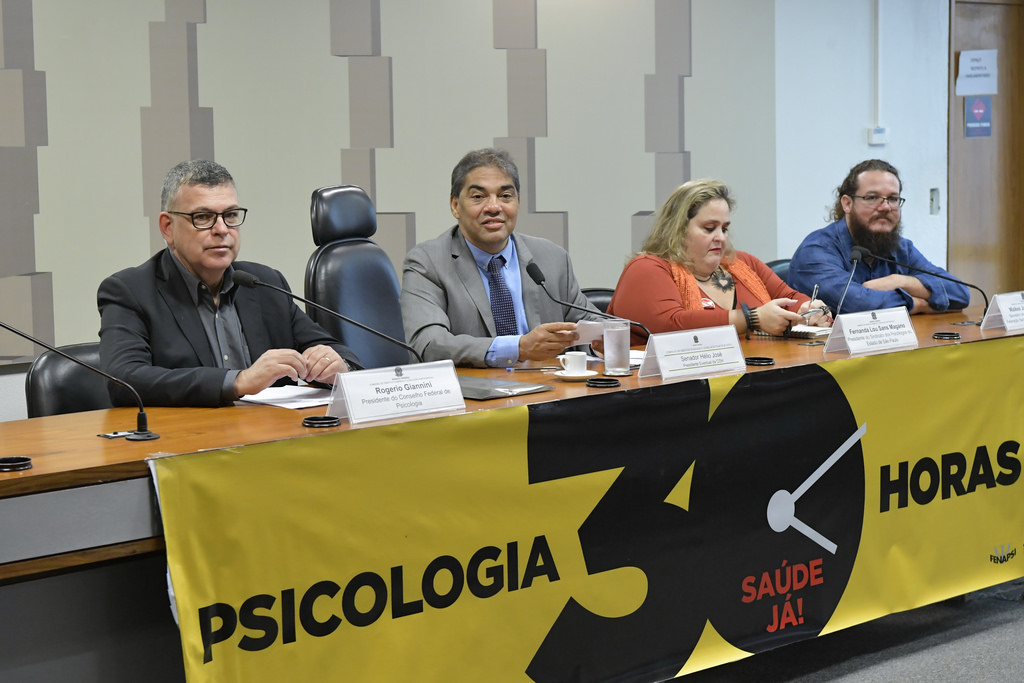A audiência, presidida pelo senador Hélio José (PROS/DF), contou com as participações do presidente do Conselho Federal de Psicologia (CFP), Rogério Giannini, da presidente do Sindicato dos Psicólogos de São Paulo (SinPsi/SP), Fernanda Magano, e do secretário de Relações de Trabalho da Federação Nacional dos Psicólogos (Fenapsi), Walkes Jacques Vargas.
