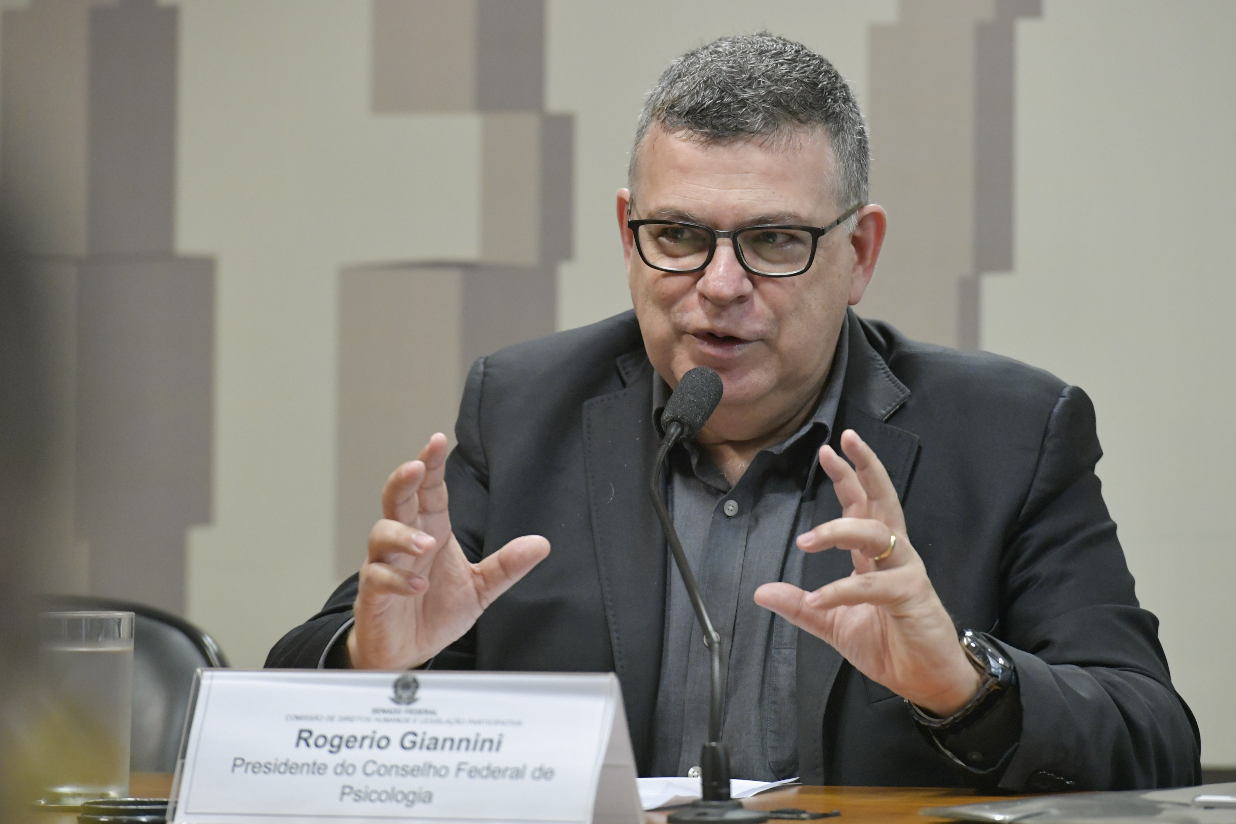 - Comissão de Direitos Humanos e Legislação Participativa (CDH) realiza audiência pública para discutir jornada de trabalho de psicólogos. Em pronunciamento, à mesa, presidente do Conselho Federal de Psicologia, Rogerio Giannini. Foto: Geraldo Magela/Agência Senado
