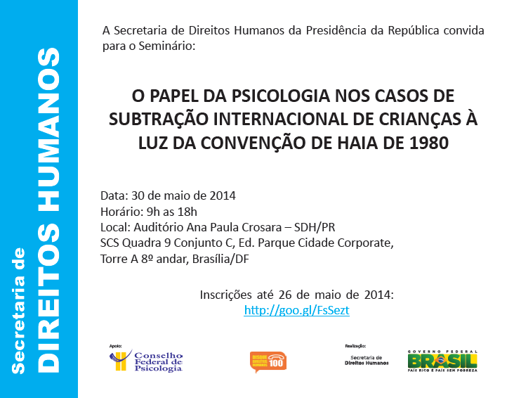 Será realizada hoje, 25 de abril, a posse da Comissão de Direitos Humanos do Conselho Federal de Psicologia (CNDH-CFP) do XVI Plenário do Conselho Federal de Psicologia (CFP). O evento ocorrerá na sede do CFP, em Brasília (DF). Na ocasião, estarão presentes a coordenadora da Comissão, Vera Paiva, juntamente com outros (as) integrantes. Teremos ainda a presença da diretoria do Conselho e a presença de parlamentares, ativistas e defensores dos direitos humanos. O evento será aberto ao público e terá início às 17h.