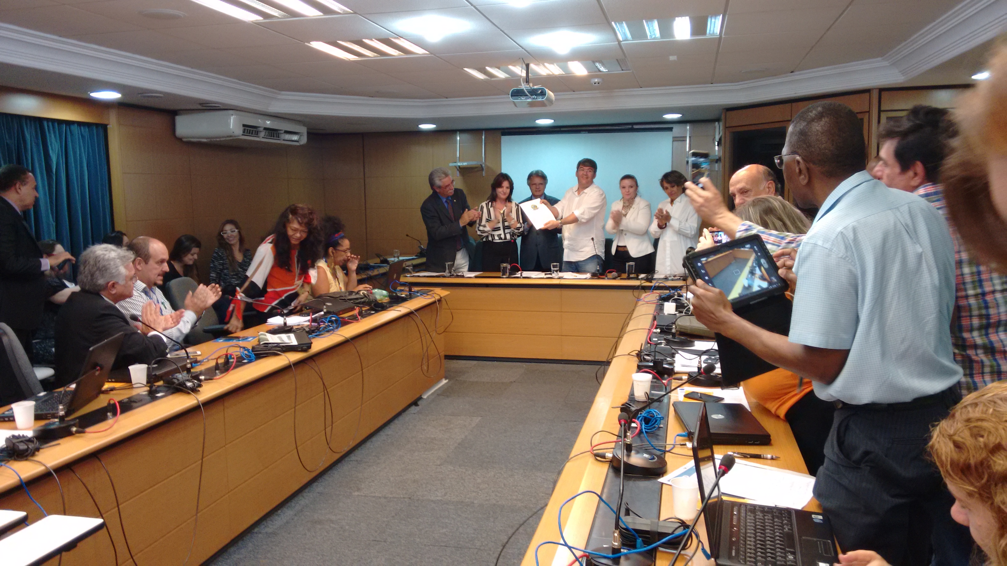 Diversas entidades e grupos organizados ligados à área da Saúde participaram nesta terça-feira (11) da Reunião de Adesão à Frente em Defesa do SUS, quando foi assinado um manifesto em defesa do Sistema Único de Saúde, além da apresentação de uma proposta do Conselho Nacional de Saúde (CNS) para a construção da Plataforma Unificadora da Defesa do SUS e organização da marcha em Defesa da Saúde do Brasil, da Saúde do Povo Brasileiro, da Democracia e do SUS, que será realizada no próximo dia 1º de dezembro, na abertura da 15ª Conferência Nacional de Saúde.