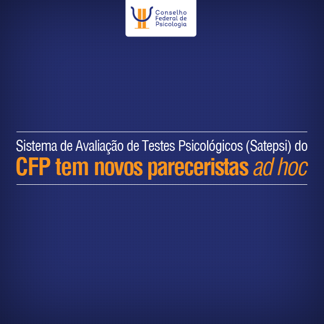 A Comissão em Avaliação Psicológica do Conselho Federal de Psicologia (CFP) já tem uma nova turma de pareceristas ad hoc do Sistema de Avaliação de Testes Psicológicos (Satepsi). Os selecionados foram aprovados em Edital de Chamada Pública e já passam a fazer parte do banco de avaliadores do CFP.