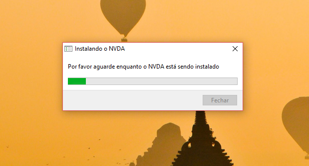 Após baixar o NVDA, clique duas vezes sobre o programa e aguarde o carregamento completo.