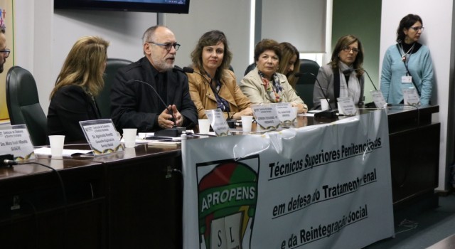 Márcia Badaró participou, no dia 10, de audiência pública promovida pela Comissão de Cidadania e Direitos Humanos da Assembleia Legislativa do Rio Grande do Sul (Alergs), em Porto Alegre, sobre “A importância do tratamento penal”. O Projeto de Lei Complementar (PLC) 245/2016, que tramita na instituição, pretende alterar a Lei Complementar nº 13259/2009, que dispõe sobre o quadro especial de servidores penitenciários do Estado do Rio Grande do Sul e nomear legalmente todas as categorias profissionais da área do tratamento penal como “guardas prisionais”, descaracterizando assim as especificidades das profissões e suas atribuições no sistema prisional. Márcia foi convidada pelo Conselho Regional de Psicologia do Rio Grande do Sul (CRP-07) e pela Associação dos Profissionais Penitenciários de Nível Superior do Rio Grande do Sul (Apropens/RS) para discutir a questão.