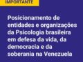 Entidades da Psicologia brasileira se posicionam em defesa da vida, da democracia e da soberania na Venezuela