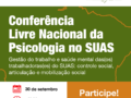 Evento integra a preparação da Psicologia para a 14ª Conferência Nacional de Assistência Social. A participação é gratuita mediante inscrição prévia
