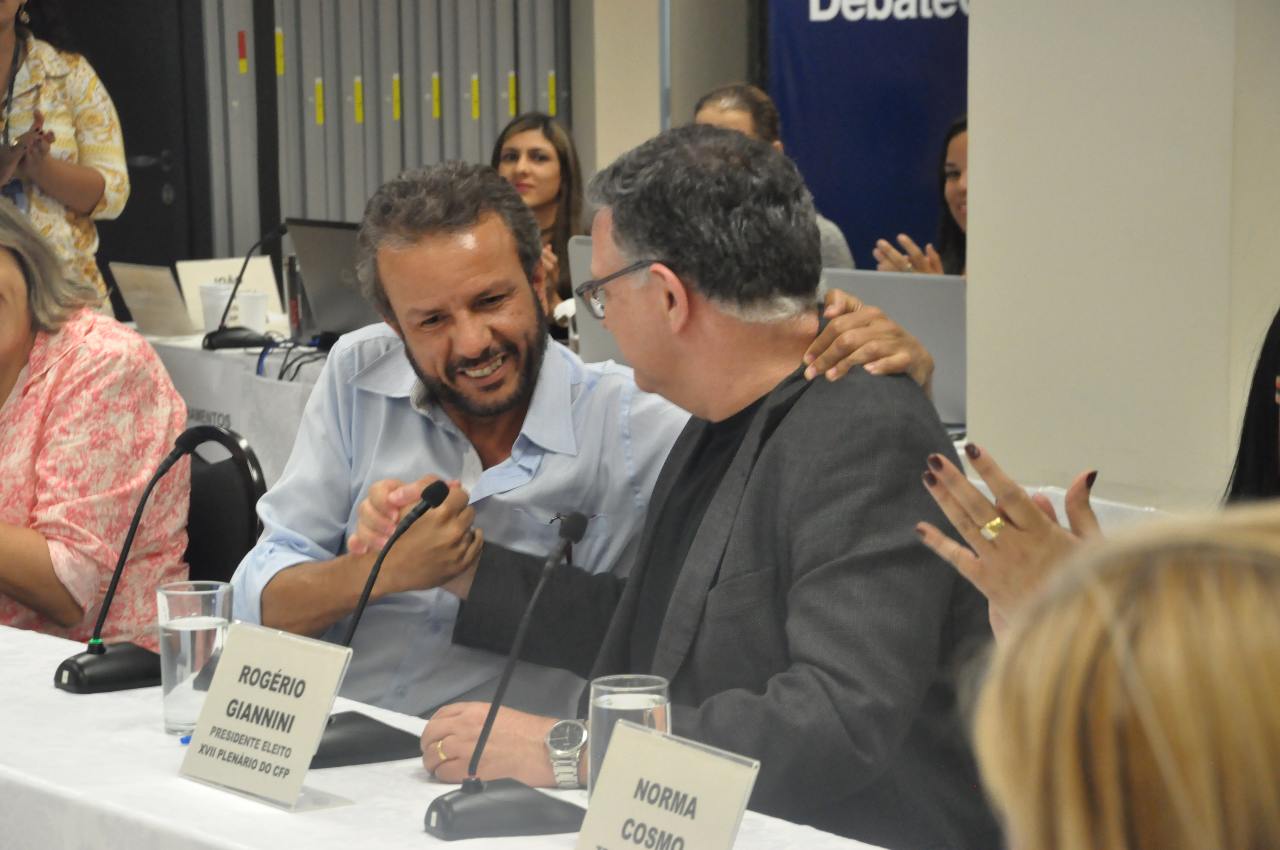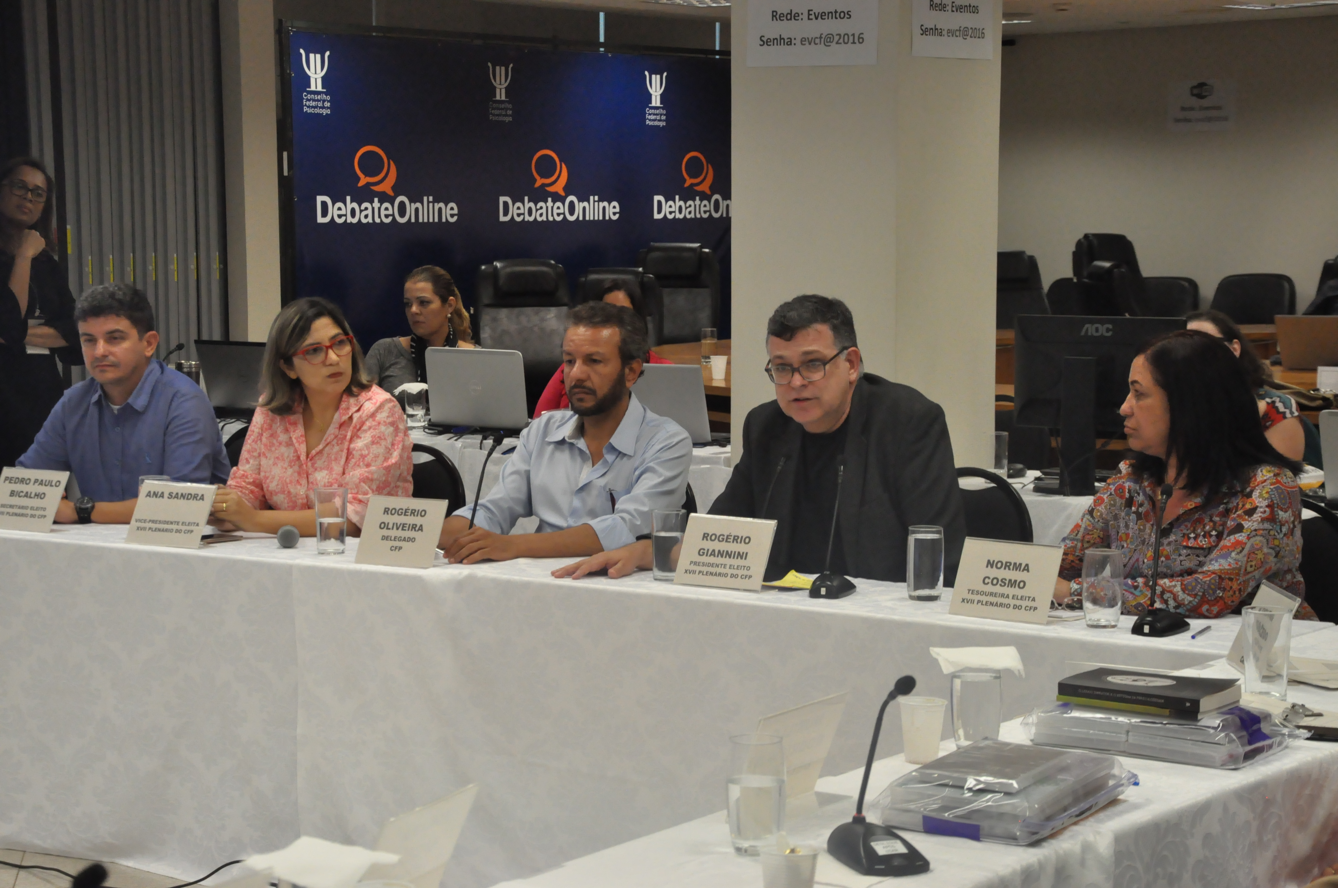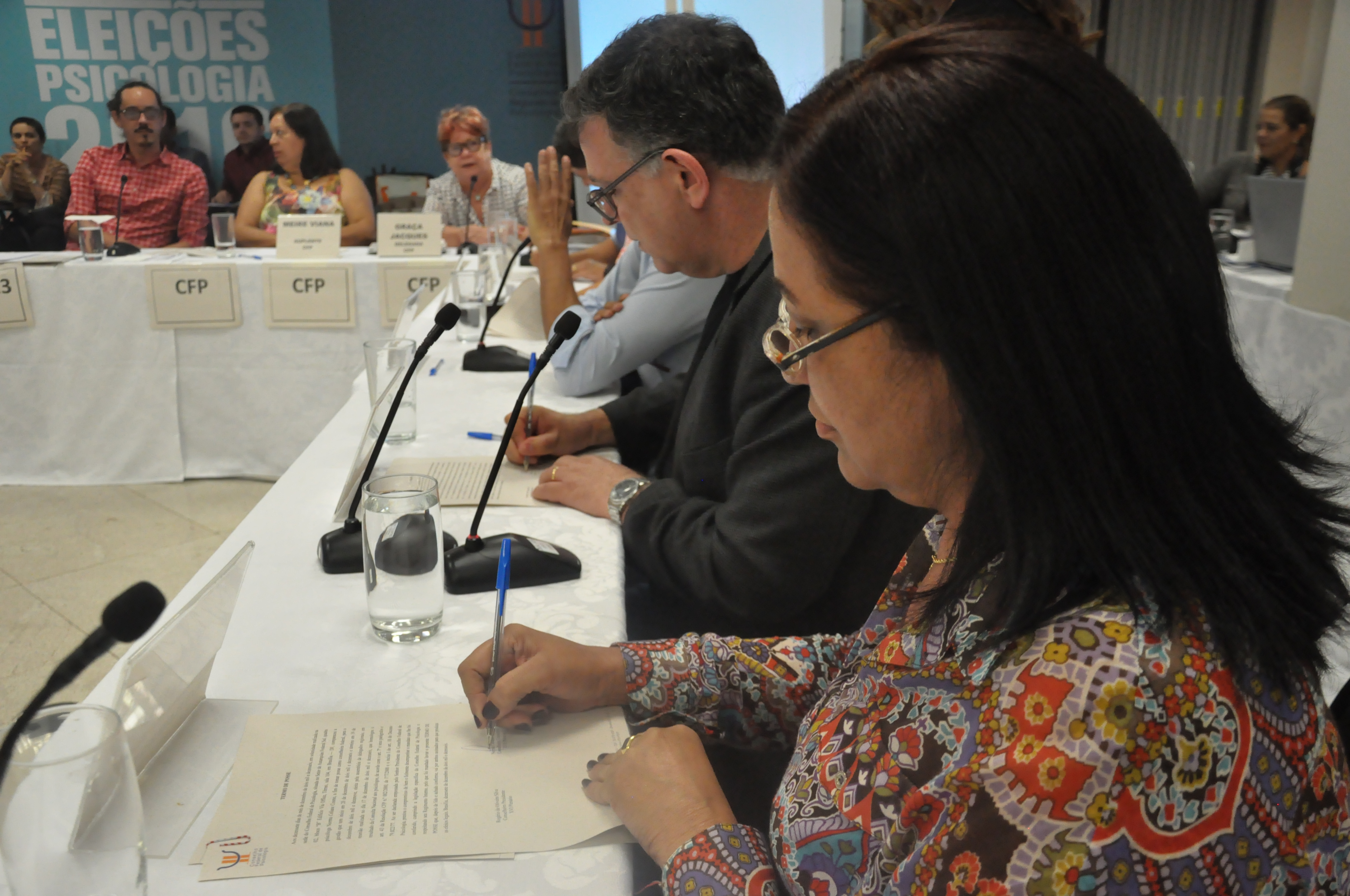 A solenidade deu posse à chapa “Cuidar da Profissão: avançar a Psicologia com ética e cidadania”, que venceu o último pleito nacional e vai gerir o CFP no período 2016-2019. O presidente da nova composição, Rogério Giannini, recebeu o cargo de presidente do antecessor, Rogério Oliveira.