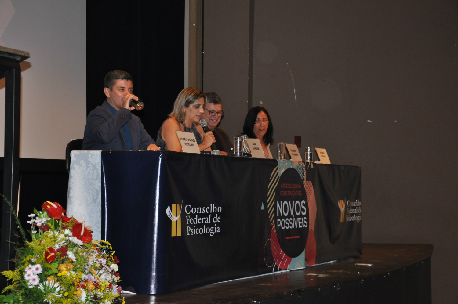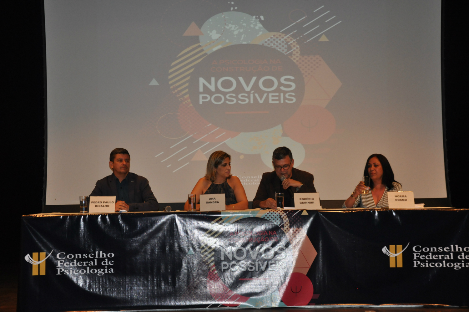 O presidente da autarquia, Rogério Giannini, a vice, Ana Sandra Fernandes, o secretário-geral, Pedro Paulo Bicalho, e a tesoureira, Norma Cosmo, apresentaram o XVII plenário e suas prioridades no seminário “A Psicologia na Construção de Novos Possíveis”. A mesa, com transmissão ao vivo, foi precedida por debate entre o ex-ministro da Justiça e subprocurador-geral da República Eugênio Aragão e as psicólogas e professoras Ana Bock, do Instituto Silvia Lane e da Pontifícia Universidade Católica de São Paulo (PUC-SP), e Maria Cláudia Oliveira, da Universidade de Brasília (UnB) e da Associação Nacional de Pesquisa e Pós-graduação (Anpepp/FENPB). (O CFP publicará matéria à parte sobre a discussão.)