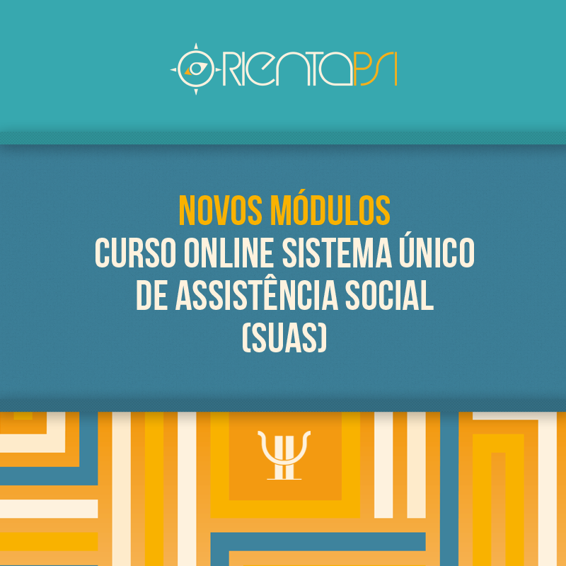 Já estão disponíveis dois novos módulos do Curso Introdutório ao Sistema Único de Assistência Social (SUAS) do OrientaPsi. São eles: “Proteção Social Básica” e “Proteção Social Especial”. O anterior, “Visão Geral do SUAS”, foi lançado junto com o curso na última sexta-feira, dia 18.