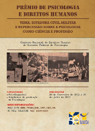 A Comissão Nacional de Direitos Humanos (CNDH) do Conselho Federal de Psicologia realizou, neste ano de 2013, o Prêmio de Psicologia e Direitos Humanos: Ditadura Civil-Militar e Repercussão sobre a Psicologia como Ciência e Profissão, com o intuito de estimular em estudantes e psicólogas (os) a produção de artigos a respeito do regime autoritário vivido pelos brasileiros entre 1964 e 1985. Ao todo, foram recebidos 52 artigos.