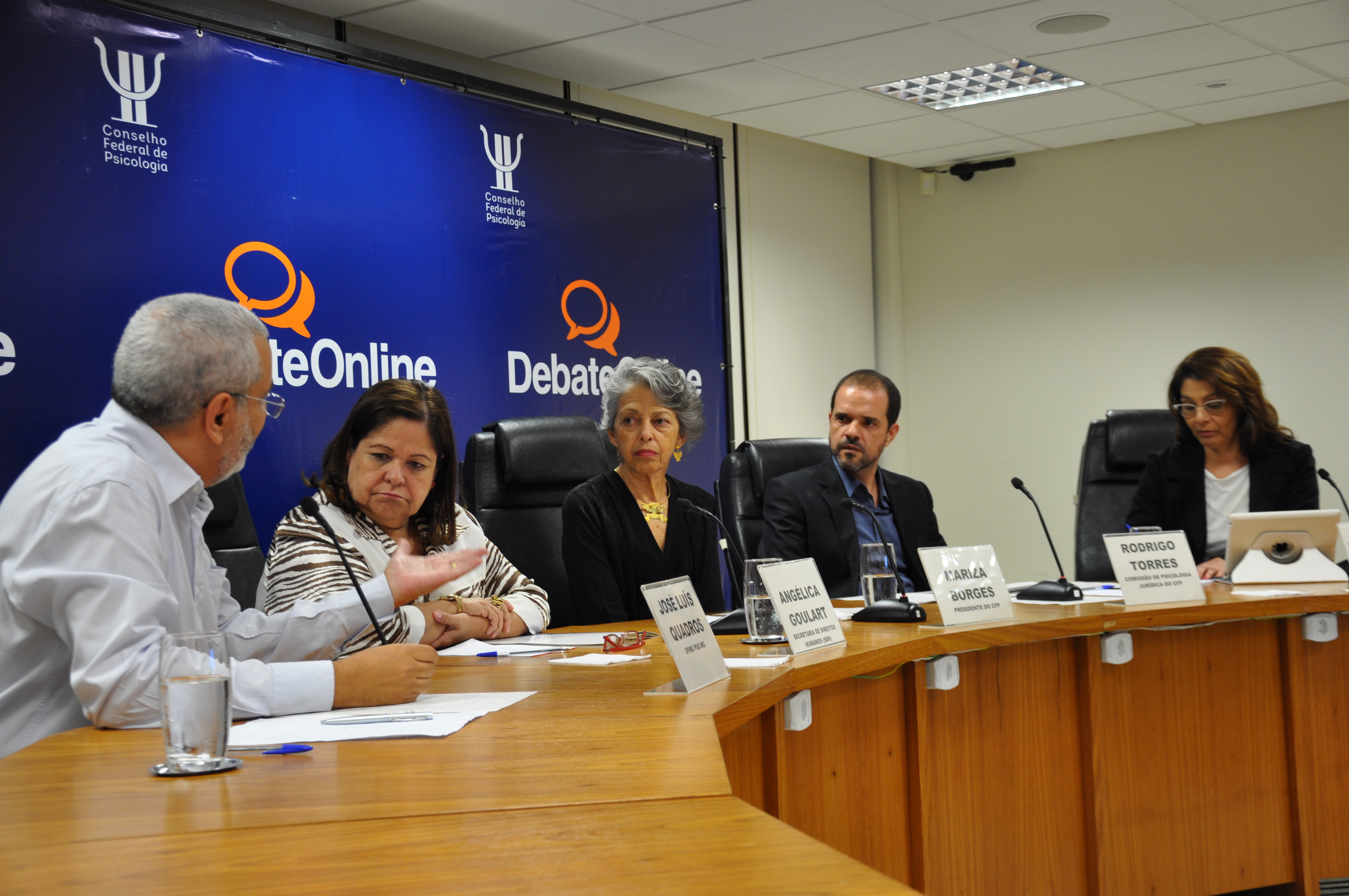 Participaram do debate Angélica Moura Goulart, Secretária Nacional de Promoção dos Direitos da Criança e do Adolescente da Secretaria de Direitos Humanos (SDH) da Presidência da República, Mariza Borges, presidente do CFP, e os membros da Comissão de Psicologia Jurídica do CFP, Rodrigo Tôrres e Maria José Gontijo Salum, além de José Luís Quadros de Magalhães, professor de Direito Constitucional da Universidade Federal de Minas Gerais (UFMG) e da Pontifícia Universidade Católica de Minas Gerais (PUC-MG).