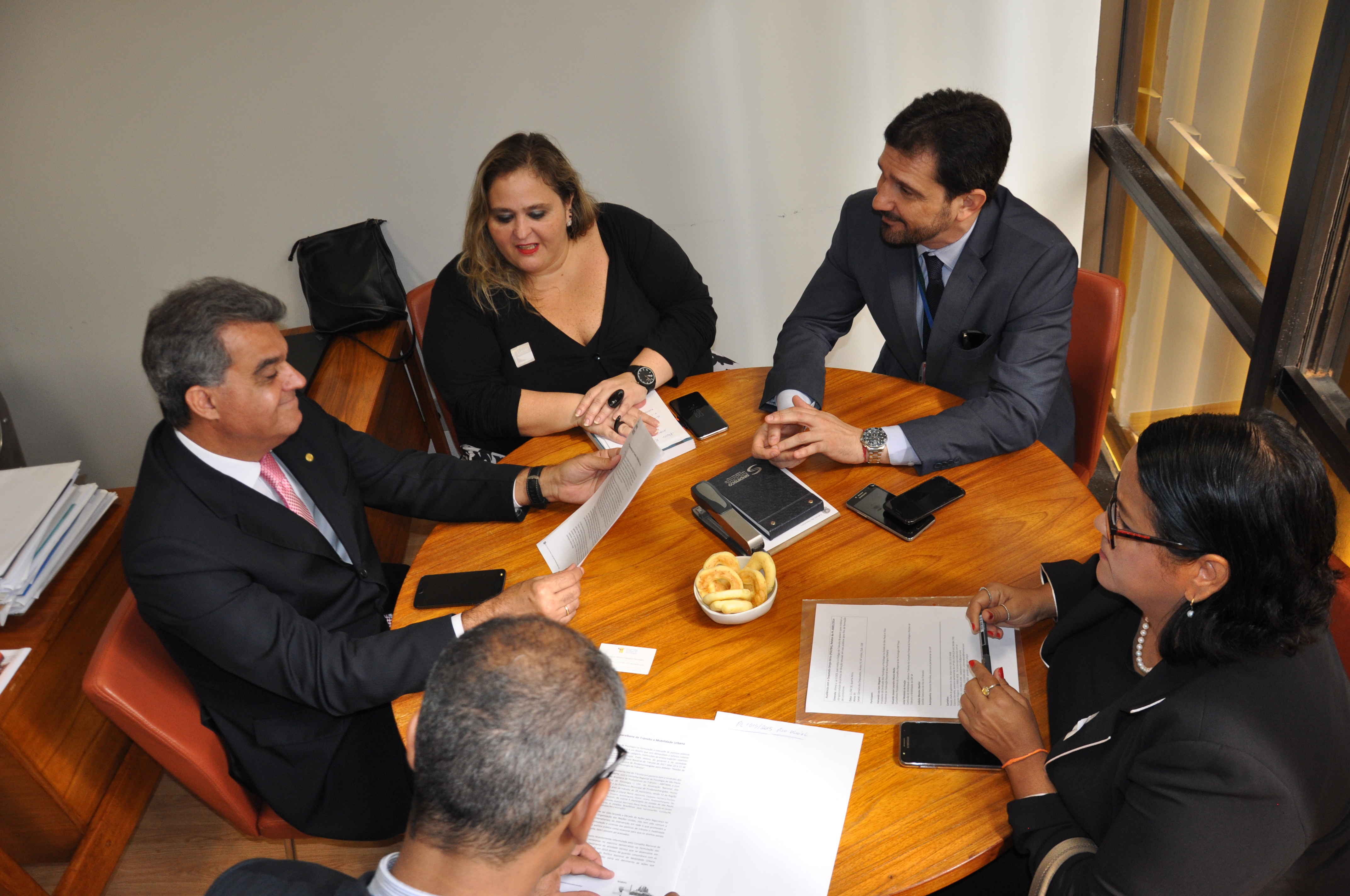 Representantes do grupo de trabalho “Mobilidade, trânsito e transporte” do Conselho Federal de Psicologia (CFP) e representante da Federação Nacional dos Psicólogos (Fenapsi) se reuniram, nesta quarta-feira (11), com o deputado federal Sérgio Brito (PSD/BA) para discutir o Projeto de Lei 8085/2014, que altera a Lei nº 9.503/1997, que instituiu o Código de Trânsito Brasileiro.