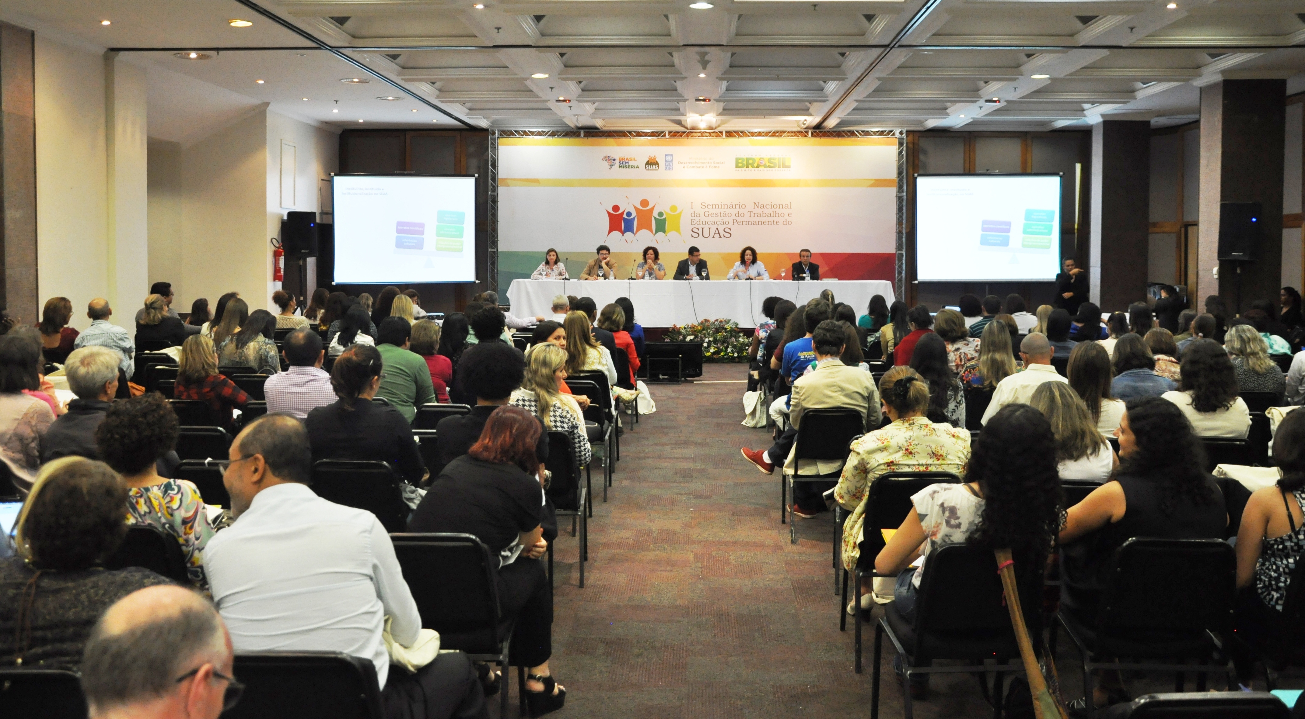 O I Seminário Nacional trouxe, ainda, debates sobre gestão do trabalho e vigilância socioassistencial: integração e possibilidades; educação permanente no SUAS: perspectivas e desafios; SUAS e sistema de justiça: especificidades e interfaces; reconhecimento dos profissionais do SUAS: ressignificando o trabalho social; e a participação dos trabalhadores nas instâncias do SUAS: perspectivas e limites.