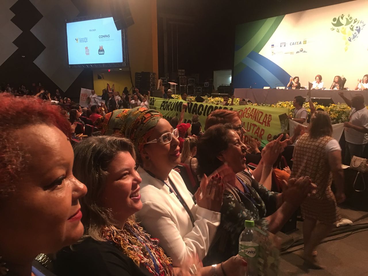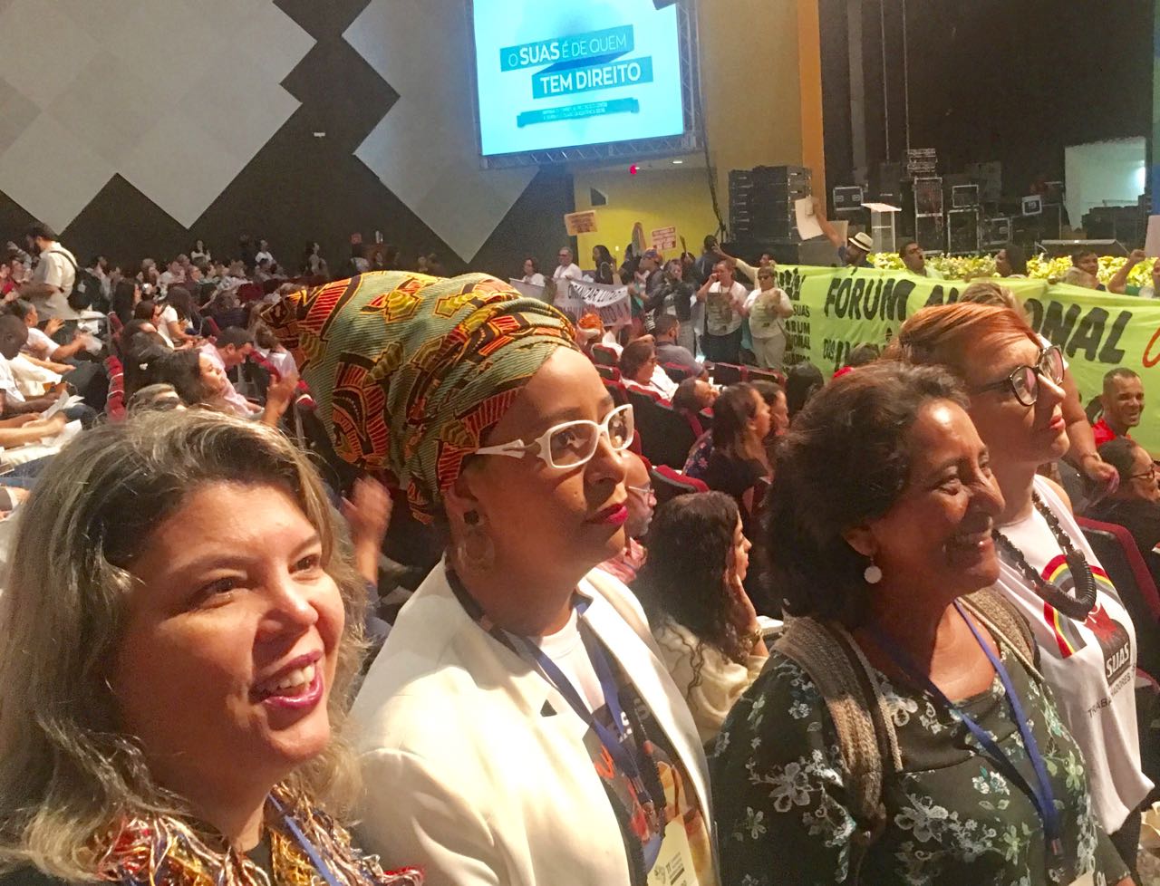 Uma manifestação de profissionais e usuários do Suas, em frente ao Centro de Convenções Ulysses Guimarães, encerrou o dia, demonstrando a insatisfação com o baixo investimento governamental na área da Assistência Social.