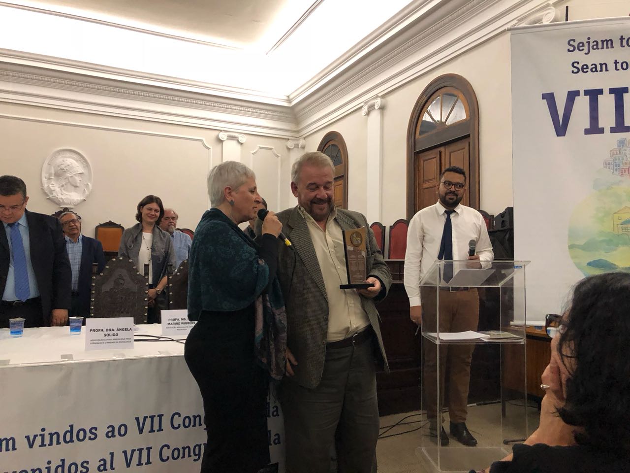 A presidente da Alfepsi e da Abep, Ângela Soligo, lembrou, na abertura, que a democracia do Brasil e de países sul-americanos está sendo atacada. Falou, ainda, dos direitos duramente conquistados por seus povos e recordou os incêndios ocorridos no Centro Histórico de Salvador e no Rio de Janeiro, no Museu Nacional da República. “Um ataque a nossa memoria e direitos. Estamos aprendendo todo dia a tornar o sofrimento coletivo uma fatalidade.”