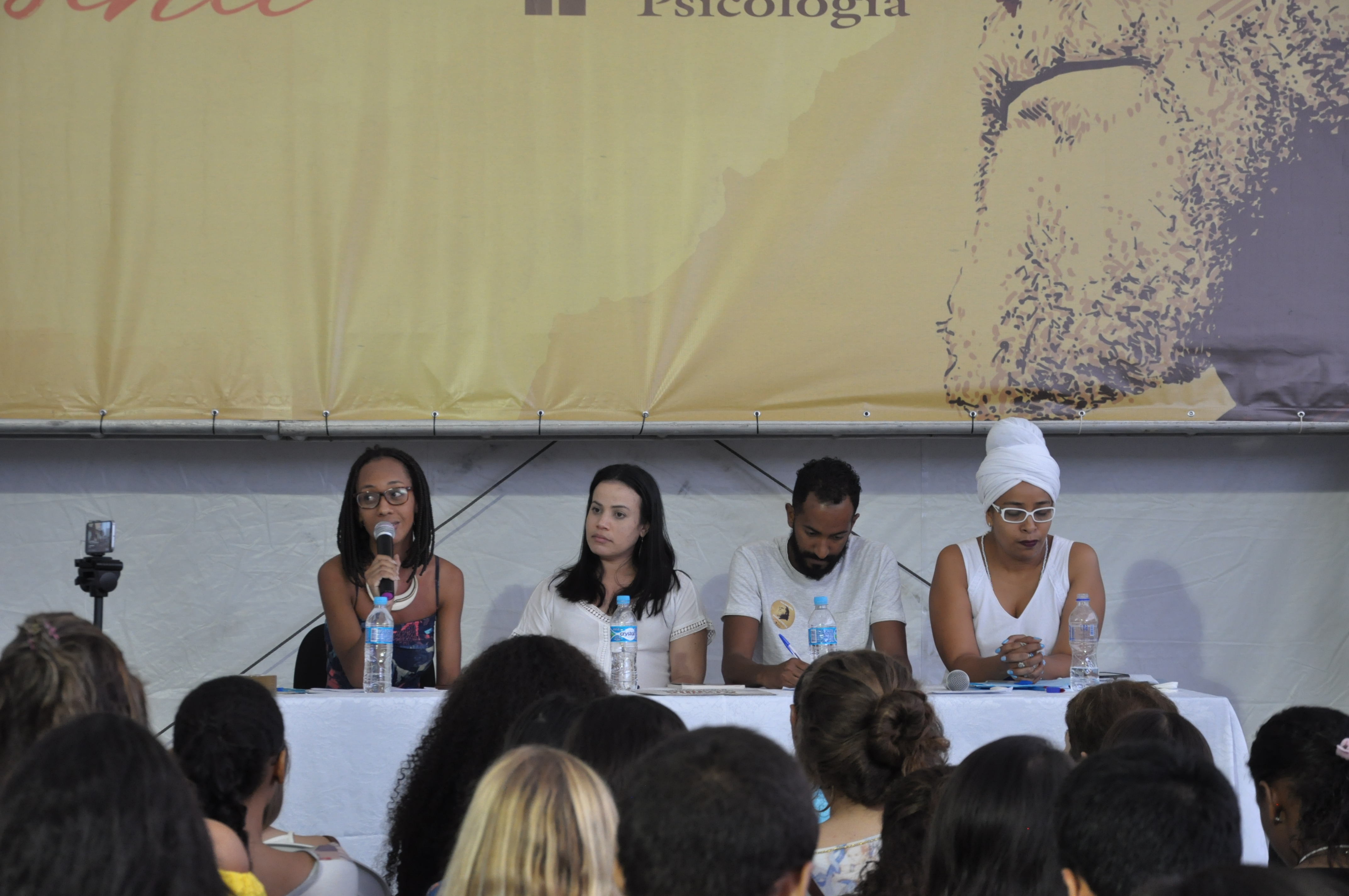 Gabriela Silva enfatizou que vidas negras importam e relacionou o genocídio da população negra com a intervenção no Rio de Janeiro. “Não tem como falar de subjetividade negra sem falar do genocídio, do racismo estrutural e de Estado que matam jovens negros todos os dias. Tornar-se negro é uma conquista, uma luta para se entender enquanto sujeito, porque a alienação social do negro começou com a alienação social do escravo, não enquanto sujeito de direito, mas enquanto coisa.”