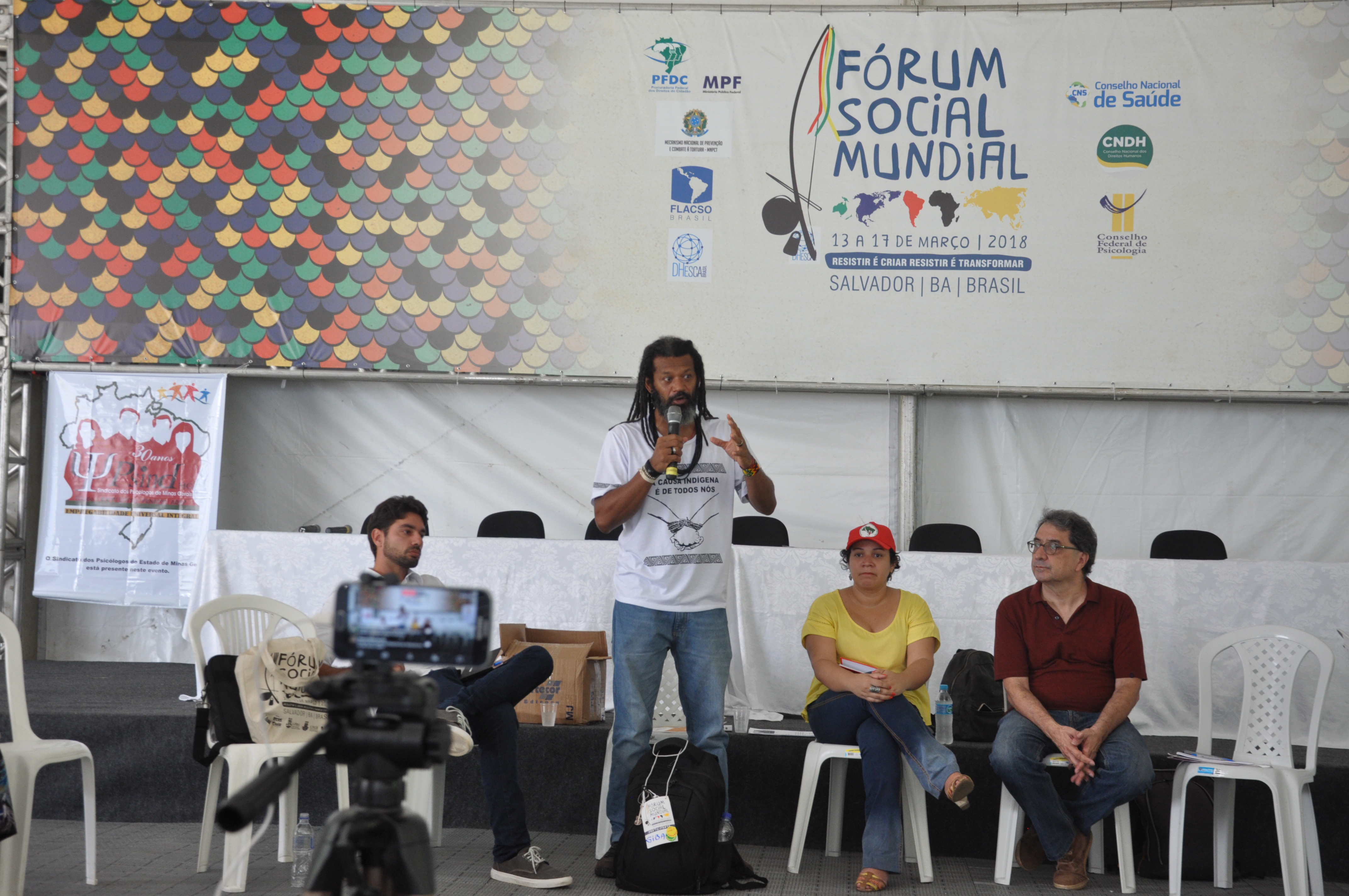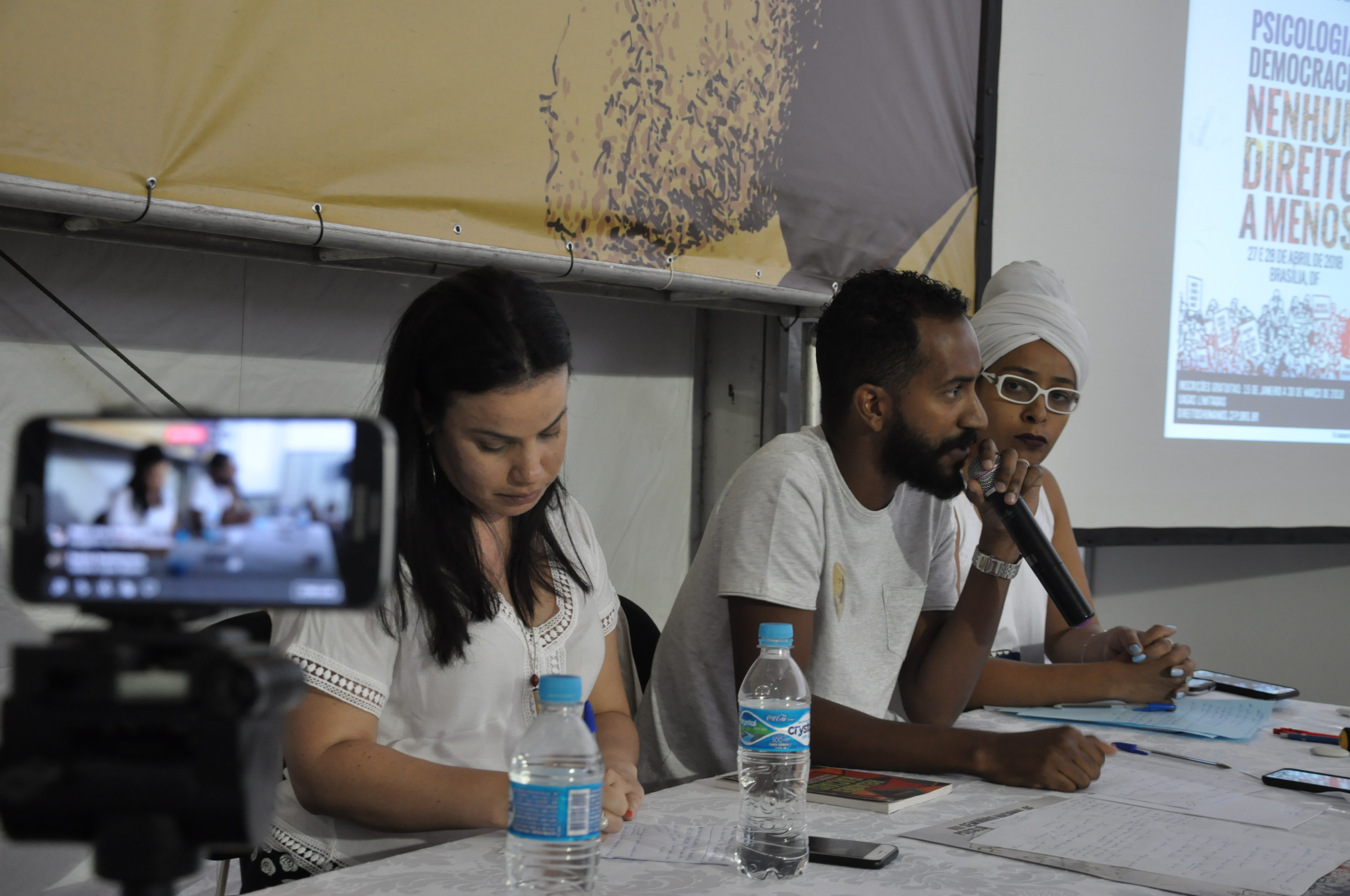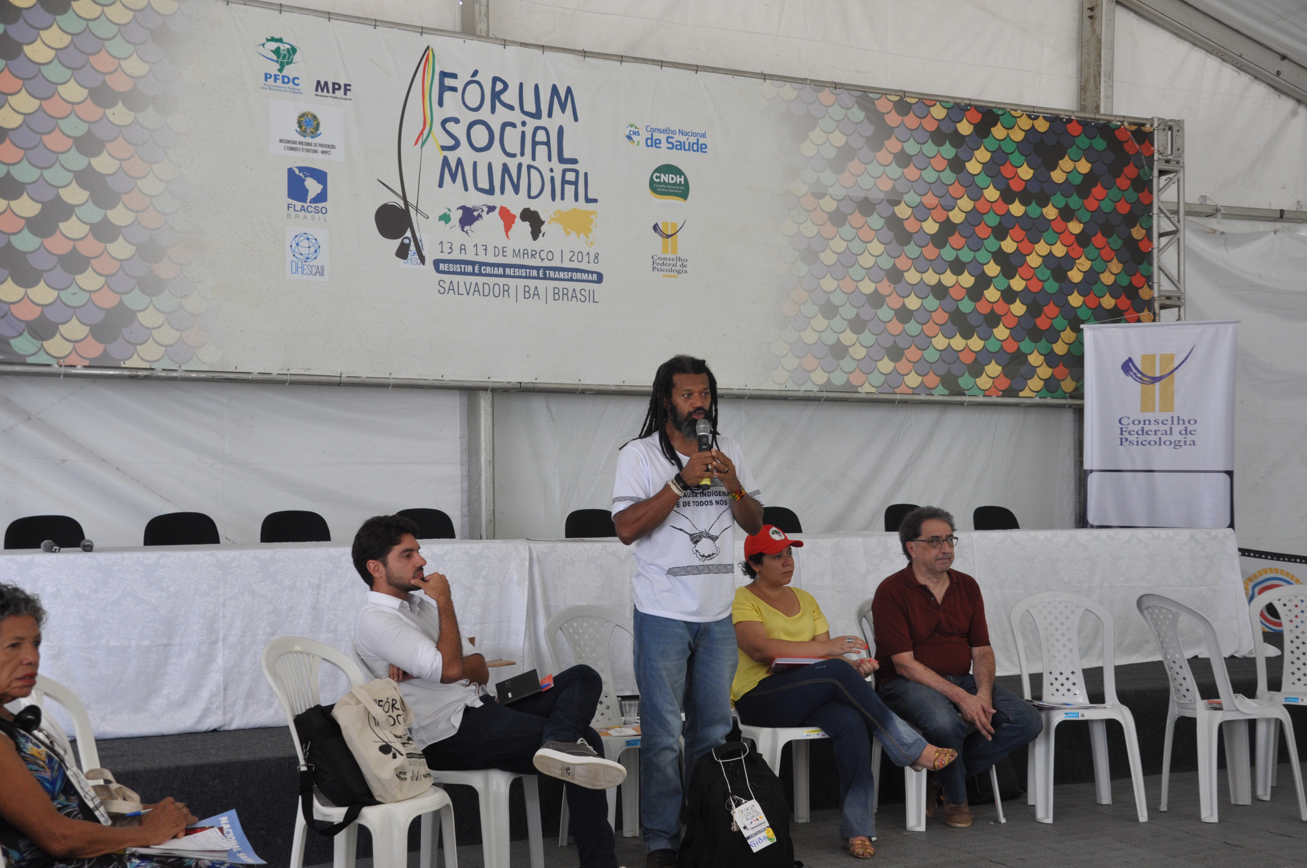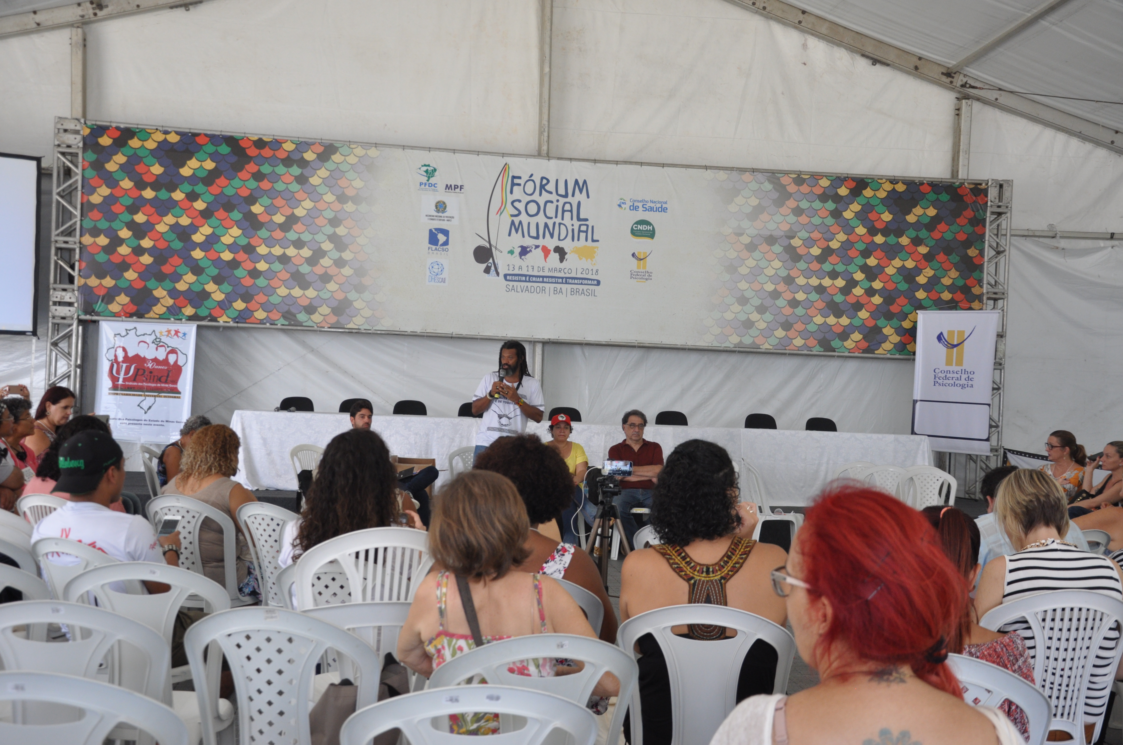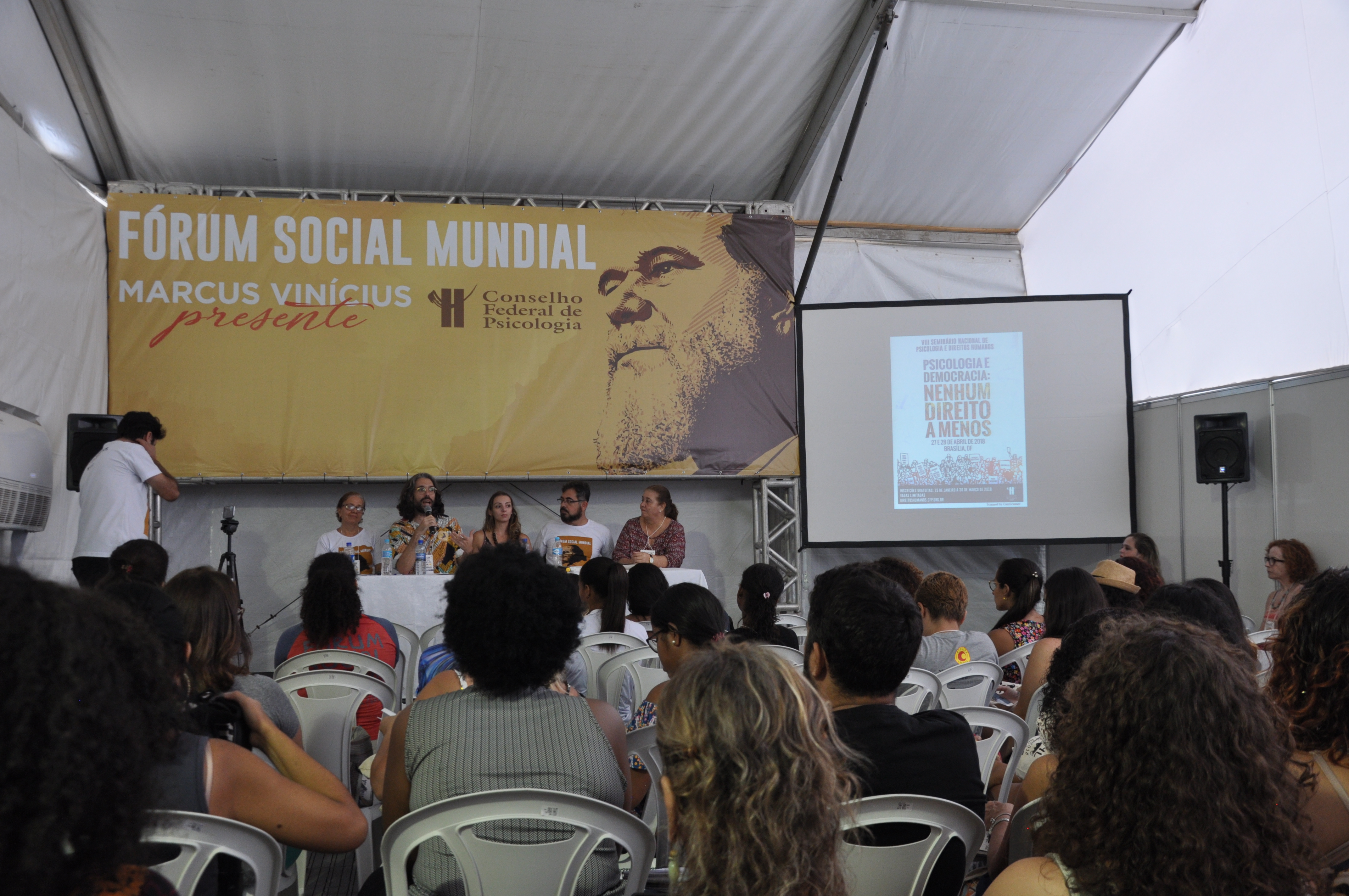 Na tenda, o presidente do CFP, Rogério Giannini, abriu a discussão sobre o processo de intervenção militar como forma de controle da sociedade. Ele alertou que “esses processos não são isolados” e que devem ser acompanhados com cautela.
