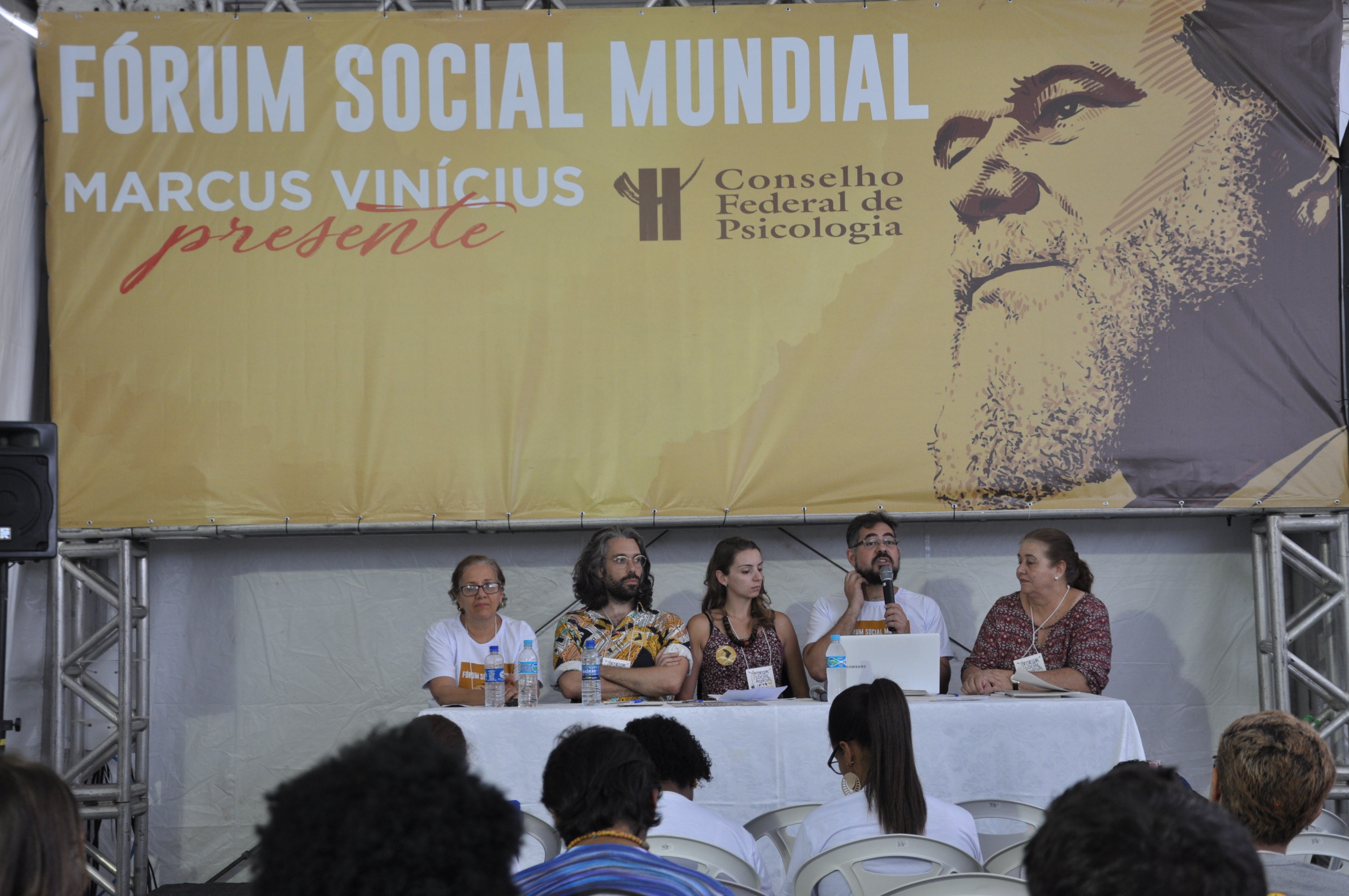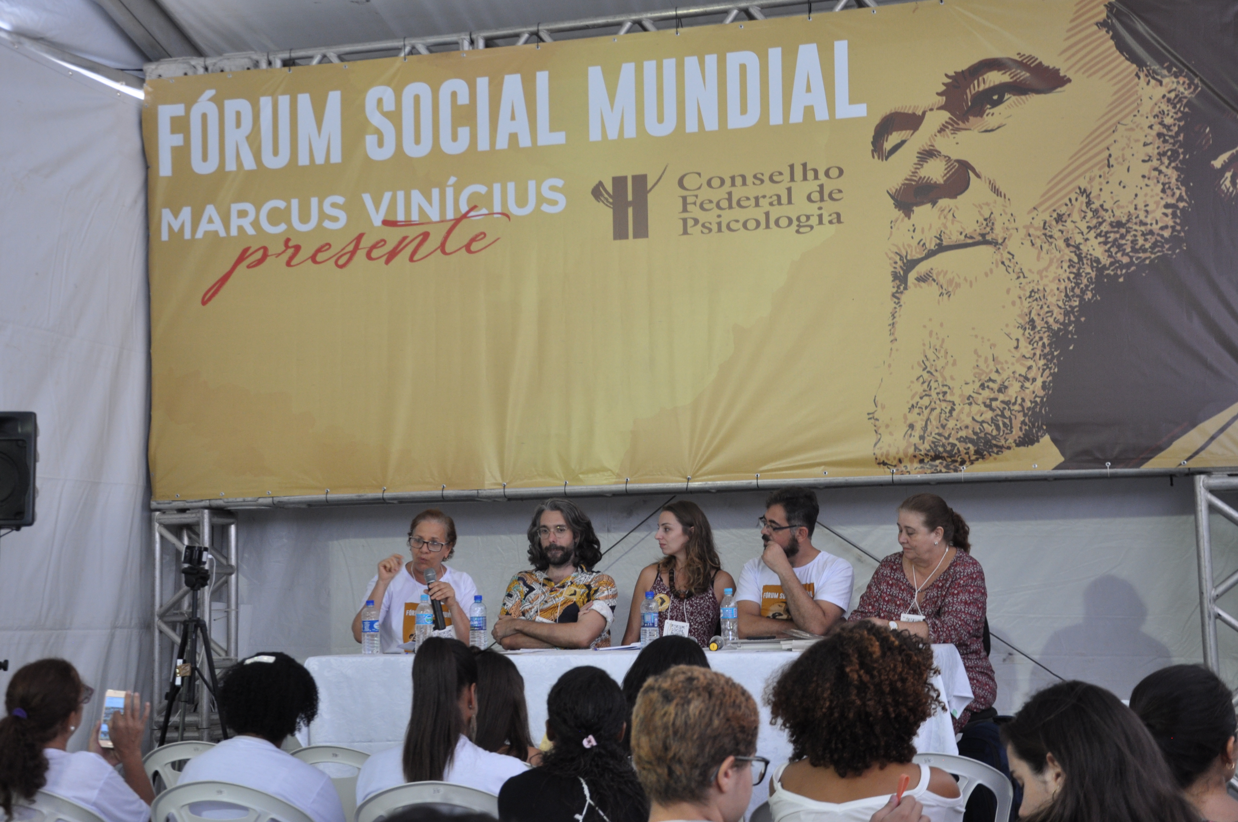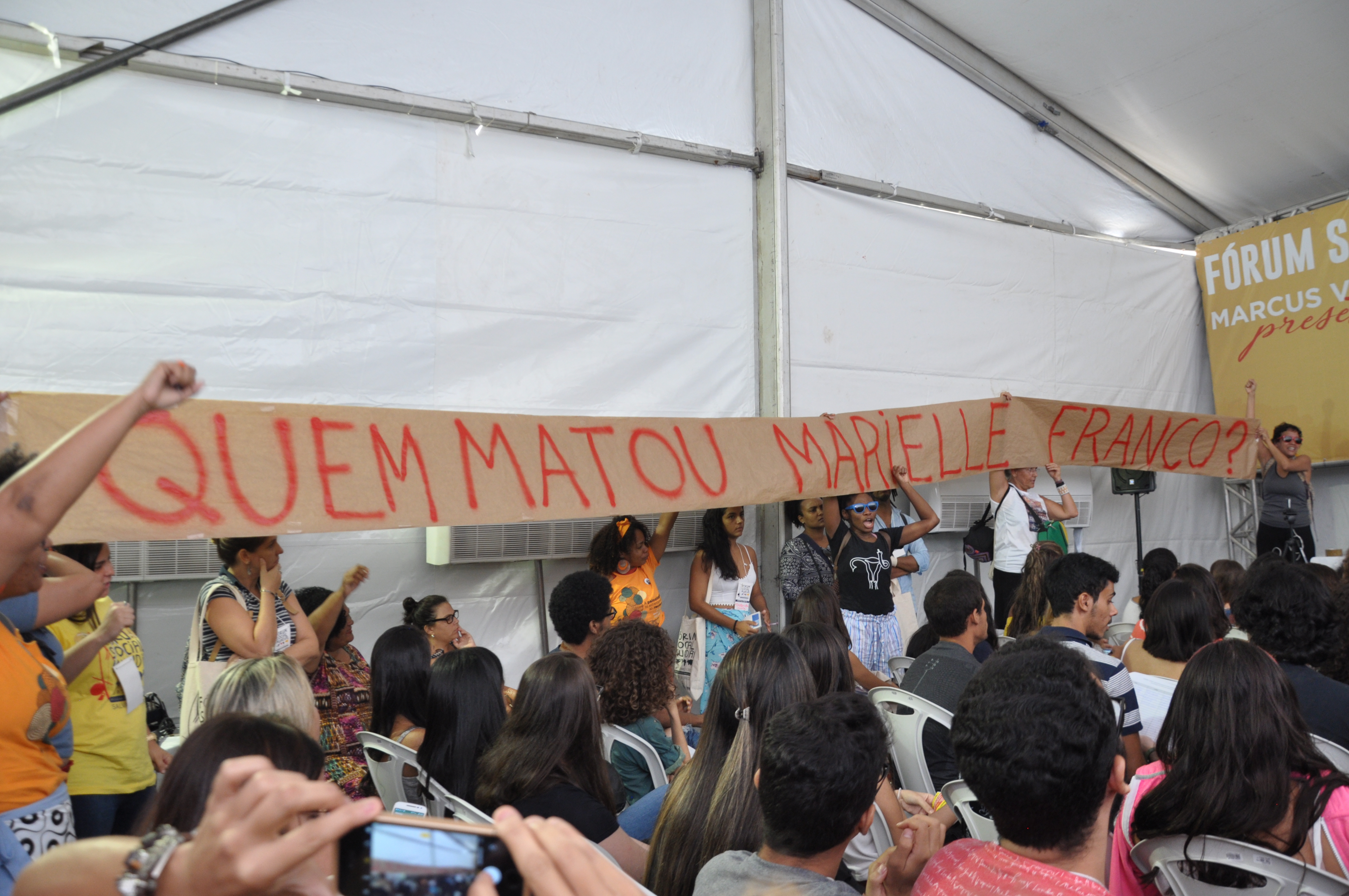 Marielle, presente! A execução da vereadora Marielle Franco e do motorista Anderson Gomes foi o foco principal de diversas mesas de debate na manhã desta quinta-feira (15), no Fórum Social Mundial (FSM 2018). O Conselho Federal de Psicologia (CFP) também pautou a discussão em suas atividades nas Tendas Marcus Vinícius e Direitos Humanos. Marielle foi assassinada a tiros na Região Central do Rio na noite de quarta-feira (14). Entre cartazes e vozes clamando por justiça, grande parte dos participantes do FSM aderiram ao ato que homenageou Marielle Franco, durante à tarde.